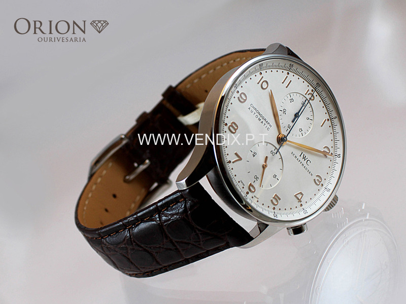 Elegância intemporal da IWC Schaffhausen, uma marca suíça com mais de 150 anos de história. Este icónico Portuguese Chronograph combina design clássico com movimento automático preciso.